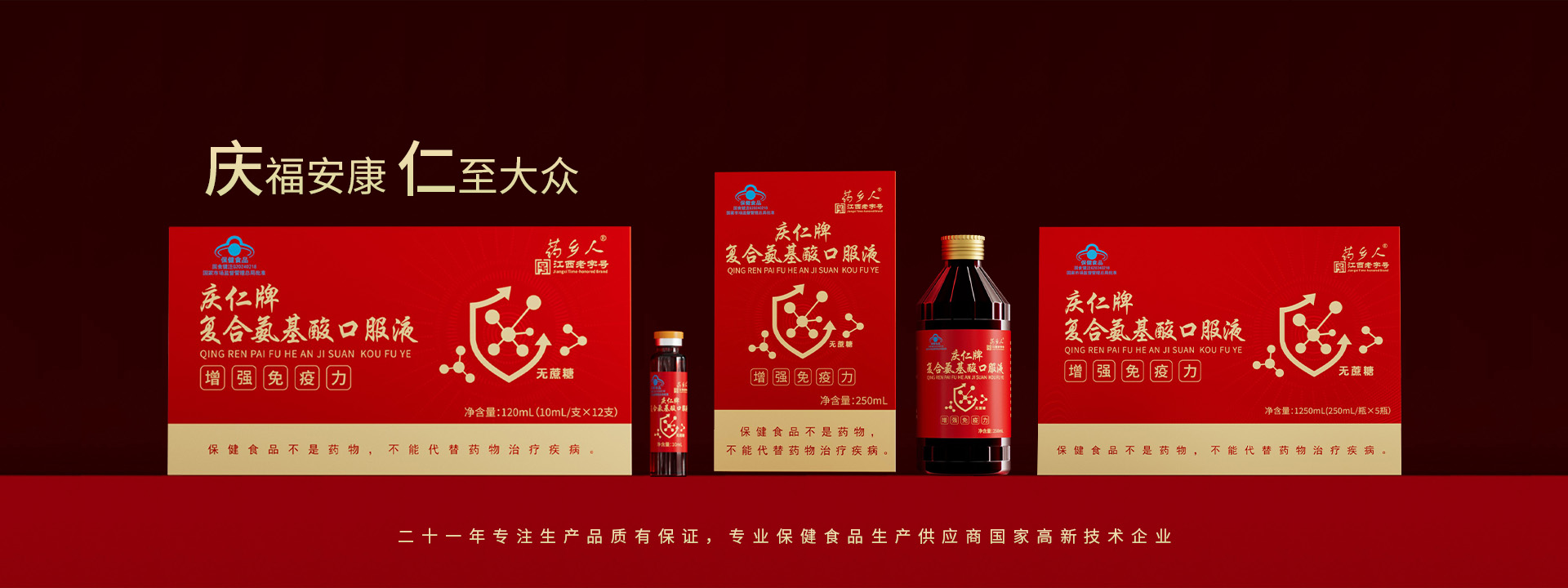 江西樟樹市慶仁保健品有限公司成立于2004年1月18號,注冊資金2600萬元,是一家專業(yè)致力于保健食品和營養(yǎng)食品研發(fā)、生產(chǎn)、銷售為一體的現(xiàn)代企業(yè)。公司現(xiàn)有保健品批文:藥鄉(xiāng)人牌黃芪當(dāng)歸阿膠口服液。慶仁牌蛋白質(zhì)粉,慶仁牌鈣鐵氨基酸口服液、慶仁牌牦牛骨茯苓山藥核桃維D顆粒、阿膠枸杞顆粒、復(fù)合氨基酸、西洋參淫羊霍酒、慶仁牌鹿茸人參酒、慶仁牌鈣維生素D咀嚼片、慶仁牌葡萄糖酸鋅口服液、葡萄糖鈣口服液、硒口服液,硒片等自有批文二十二個,正在申報的保健品批文十六個,同時擁有普通食品生產(chǎn)線、固體飲料其他飲料、配置酒、壓片糖、消殺劑生產(chǎn)線。我們的專業(yè)品質(zhì)保證...
